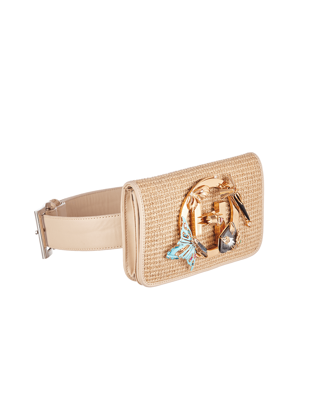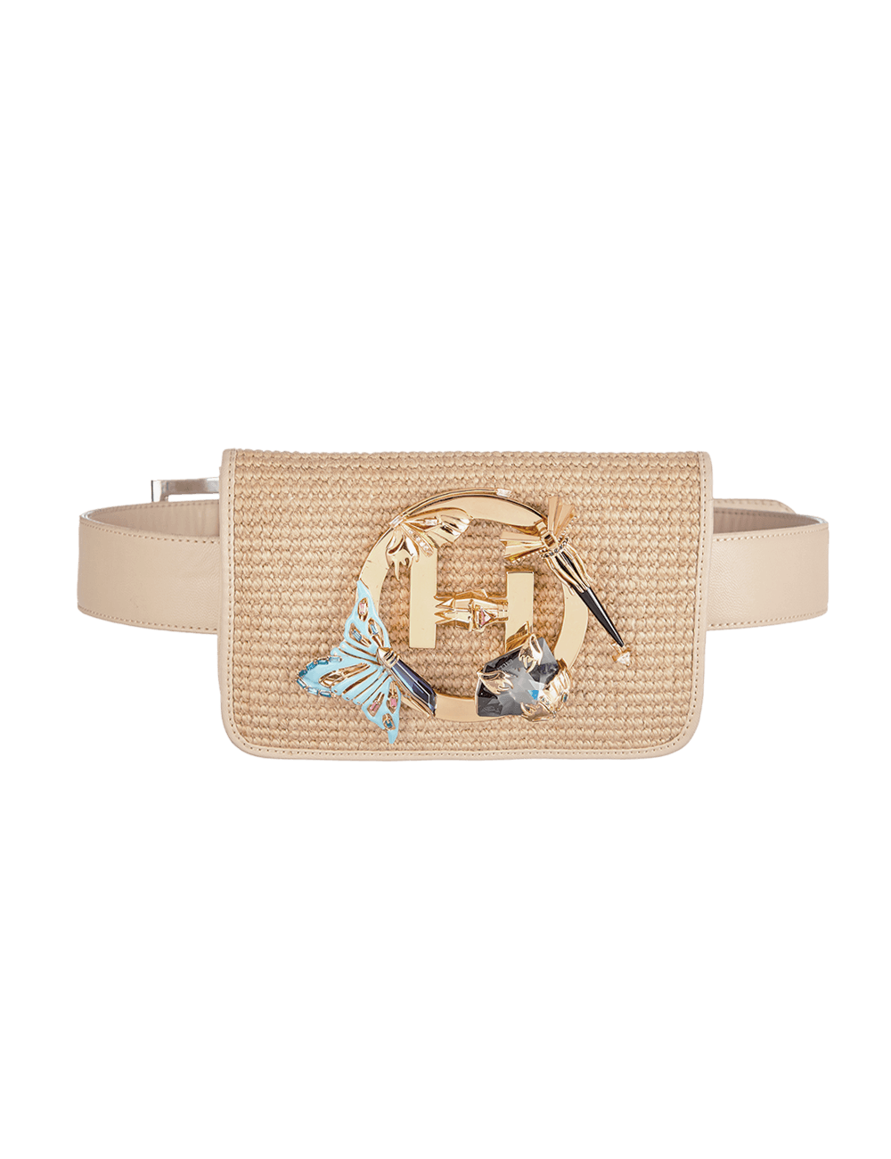 Rakul Preet Singh wearing the Jute Mini Disco Fanny Pack. A liaison of fashion and comfort, the jewelled Jute Mini Disco takes the quintessential fanny pack to a higher, more glamorous pedestal. The compact bag is crafted on hand-stitched interwoven jute with hand-applied jewels on the 22k gold Outhouse Disco logo. The bag makes for an essential fashion accessory with a detachable belt to sport the bag from cross-body, around the waist, or as a clutch with enough room to carry your party secrets wherever it travels.