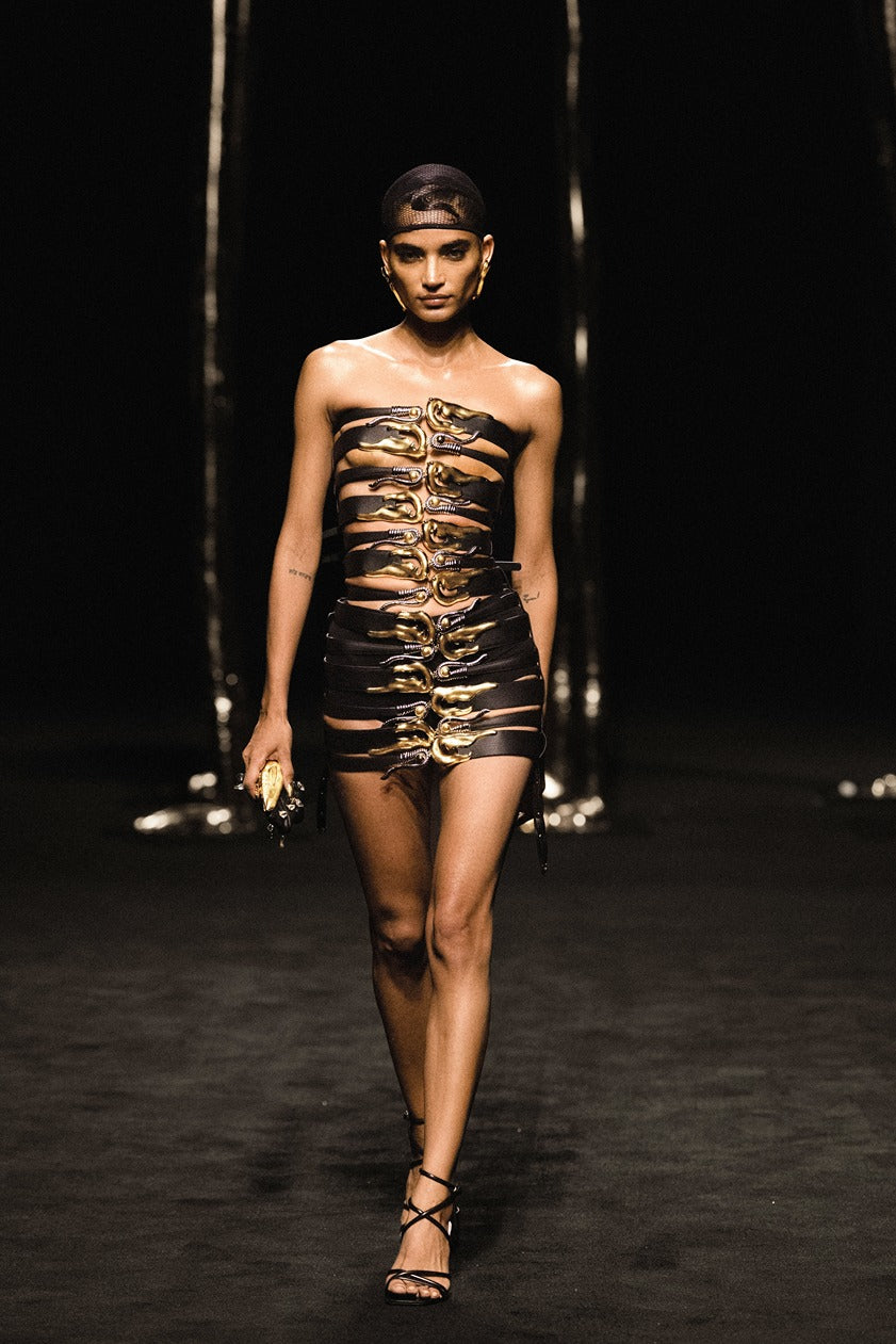 This wide belt embodies the House’s heritage as an incarnation of the Sigil motif in dual-toned hardware. Crafted from vegan leather with a napa-like texture, it clasps the waist with a duo-metallic Sigil pin, with golden curves finished in 22k gold and a silver spine articulating restraint and release. Adjustable in fit, the KOKO Sigil Belt can be styled cinched over fluid slip dresses, layered across oversized blazers, paired with high-waist trousers, or draped over knit silhouettes.