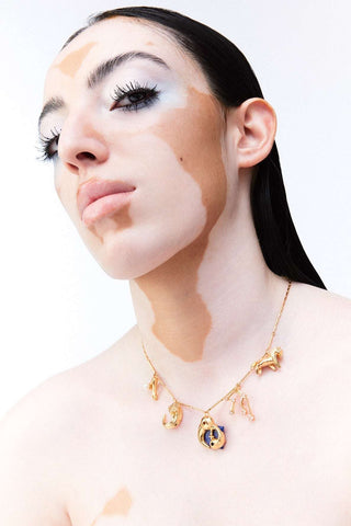 Craft your own celestial story with a bespoke cosmic masterpiece that allows you to weave your own universe. The Cancer zodiac motif, set in the semi-precious Lapis Lazuli and paired with the Cancer constellation charm, forms the heart of your piece. Personalise it with exquisite good luck charms, including your fortune number, guiding spirit animal, and additional celestial constellations, elegantly embellished with the OH celestial poppy tusk. Meticulously handcrafted, these delicate charms are designed to encapsulate your elegance and individuality. Finished in 22k gold.