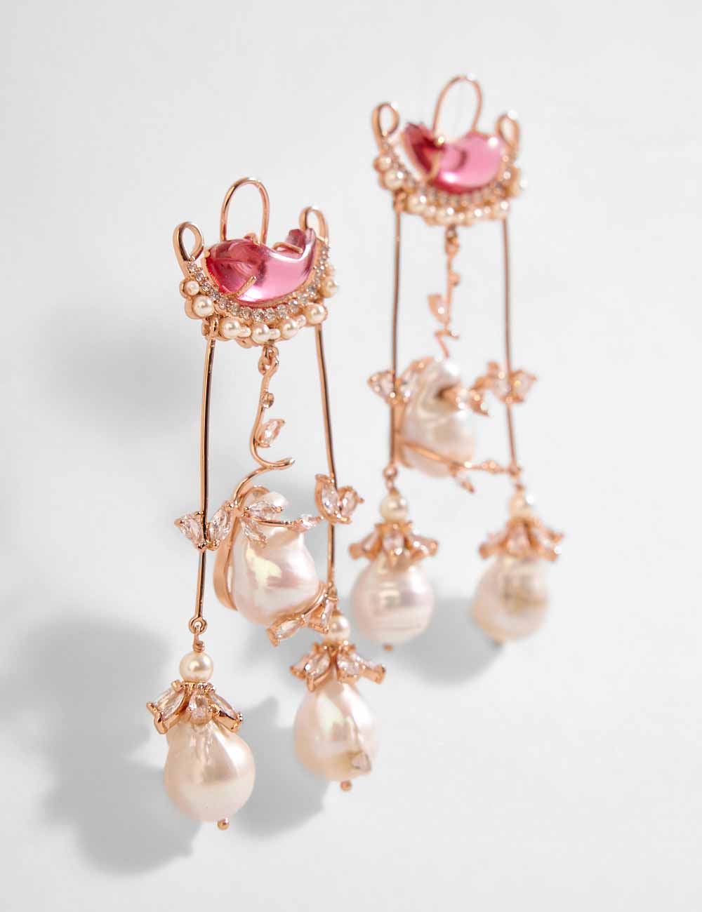 With elegant drops inspired by royal chandeliers, the Le Cleo Dewdrop Earrings in Vintage Rose is a lightweight creation featuring crystals, cubic zircons and baroque pearls. Embedded in the pair are whimsical details that evoke the supreme quality and impeccable artistry of Outhouse. Highlighting sophistication, the earrings can be the perfect addition to your wedding wardrobe finished in 22KT rose gold plating.
