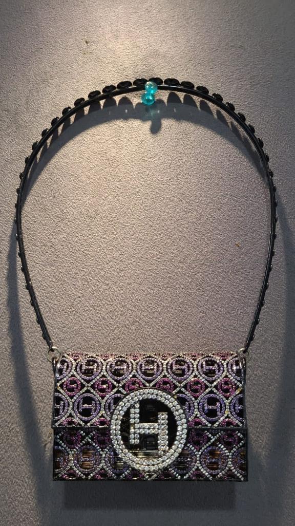 An elegant dialogue between a statement shape and a bejewelled design, the Pico Minaudi̬re Bag delights with its charming silhouette. Equipped with a striking pearl top handle, the bag is inlaid with the emblematic OH DNA pattern of the House in a pave setting, interlocked with the iconic OH monogram. A compact and elegant structure, the Minaudi̬re Bag is the perfect companion to embellish any outfit.