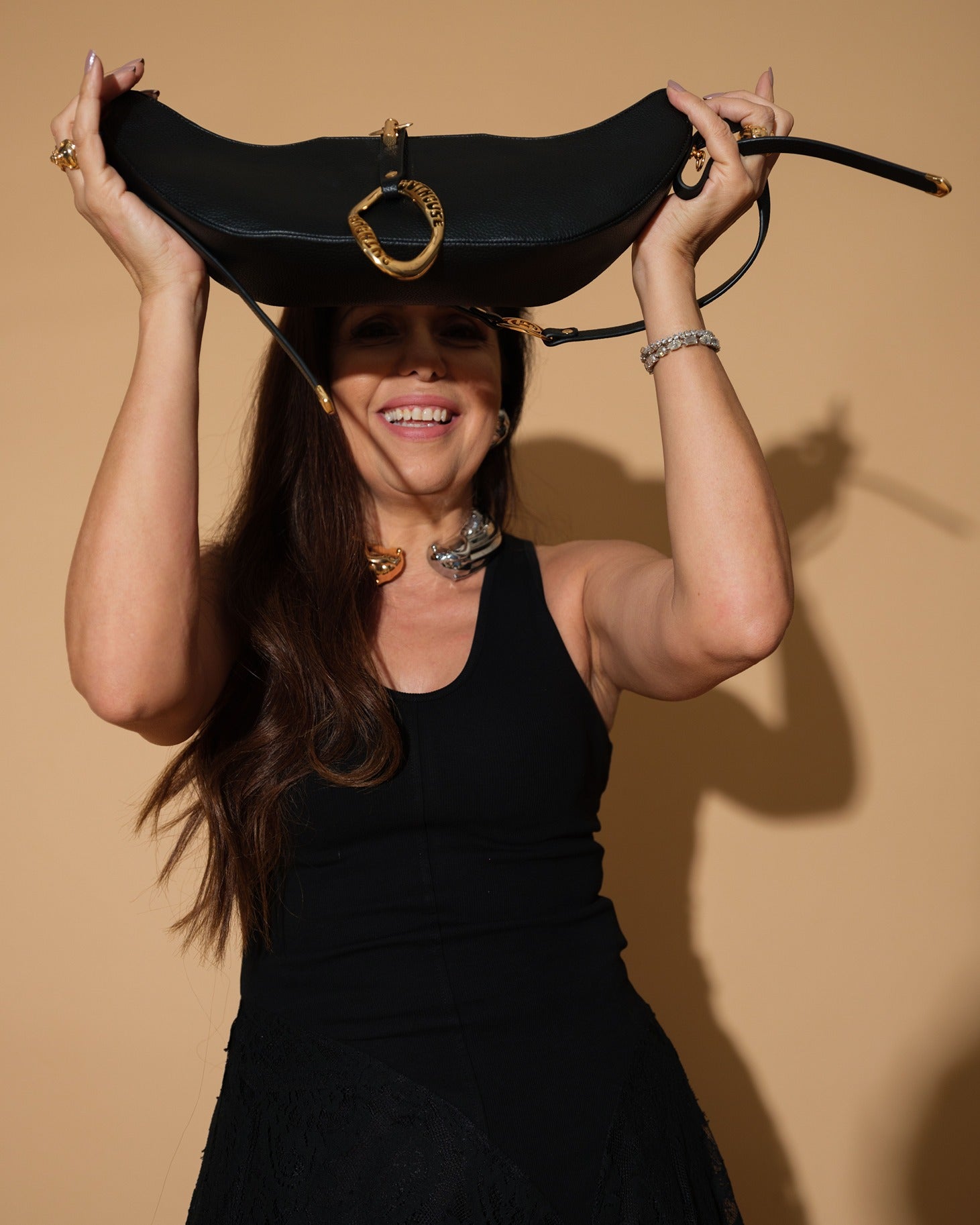 The flirtatious charisma of a high-fashion top handle crowned with the iconic OH monogram, while structured straps extend to the base, lending an architectural allure. Lined in 100% canvas, it features a card case and zip closure. Handcrafted from supple, grainy vegan leather, The Boss Swing redefines the east-west silhouette with its sculptural, boat-like form— a dramatic yet restrained statement that flows seamlessly from handle to handle and the subtle gold drip accents add a touch of drama. Anchored by the Sculptural OH Boss Link — bold, bulbous, and unapologetically audacious, enveloped in 22k gold.