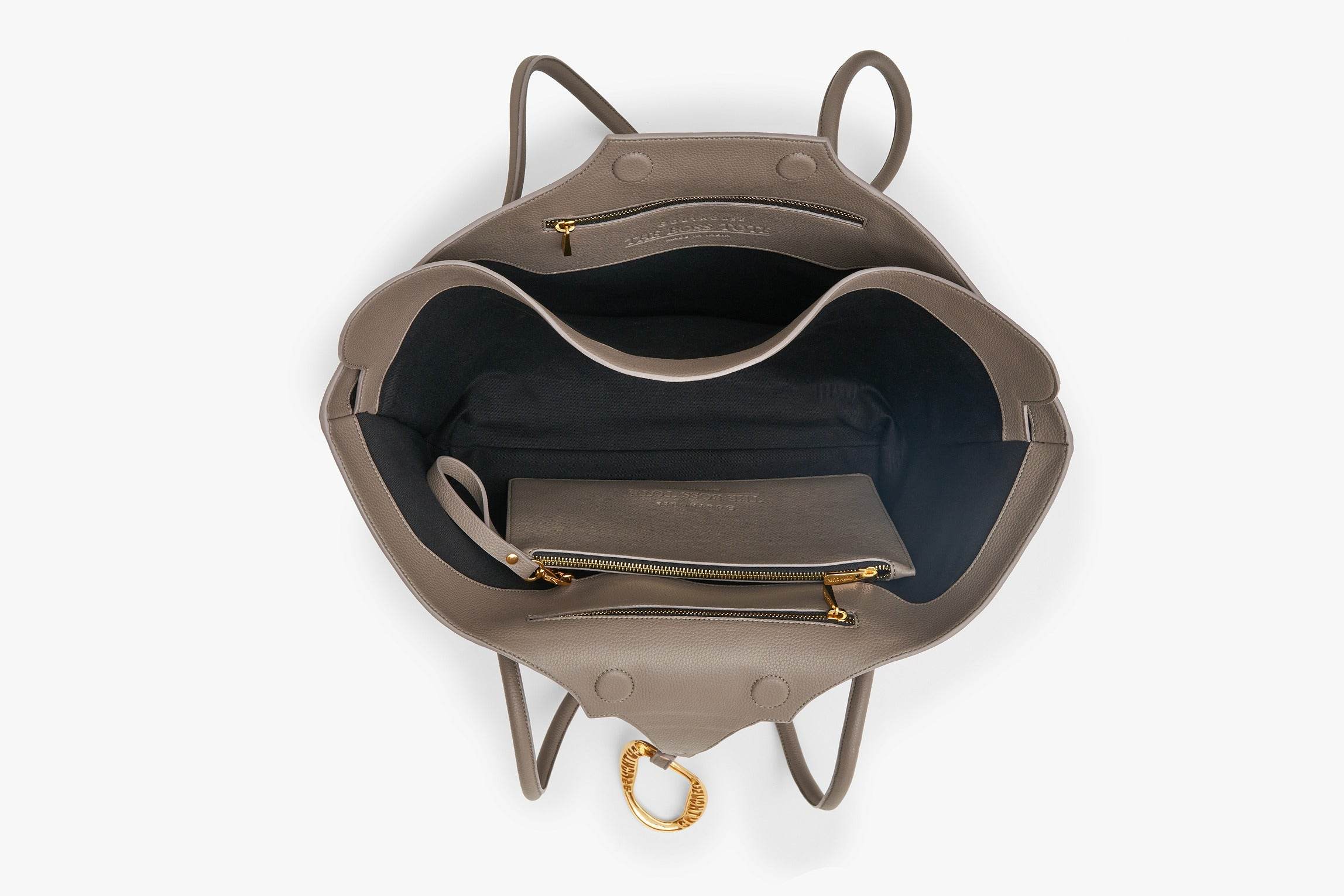 The Boss Tote reigns as an audacious icon of style. Handcrafted from supple, grainy vegan leather, it merges structured silhouettes with a tactile softness. Elongated, serpentine straps evoke fluidity and function, creating a relaxed shoulder style.