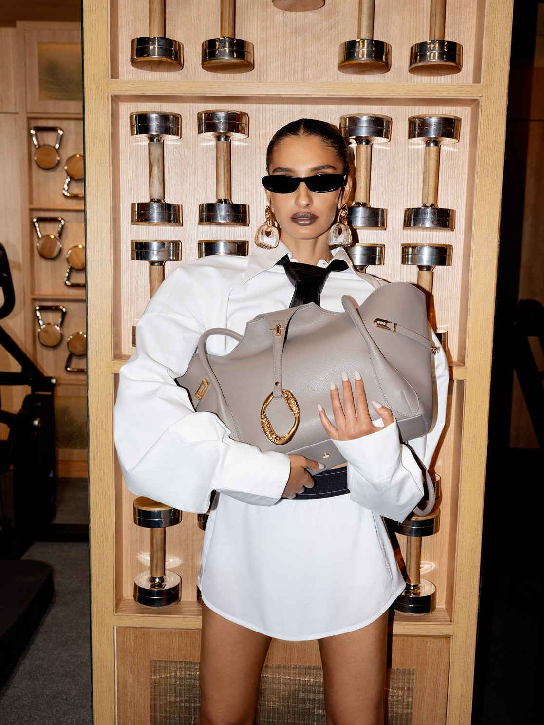 At the heart of the bag is the Sculptural OH Boss Link — a bold, bulbous statement hardware piece enveloped in 22k gold, reminiscent of classic icons yet undeniably contemporary, anchoring the design codes of the house. Inside, the tote is lined with tonal 100% cotton canvas, fitted with two zipped pockets to ensure everything is perfectly in place, it also features a removable pouch which can serve as a clutch or an extra pocket . A magnetic closure secures the slouched silhouette, while polished metallic hardware completes this carry-all power piece.