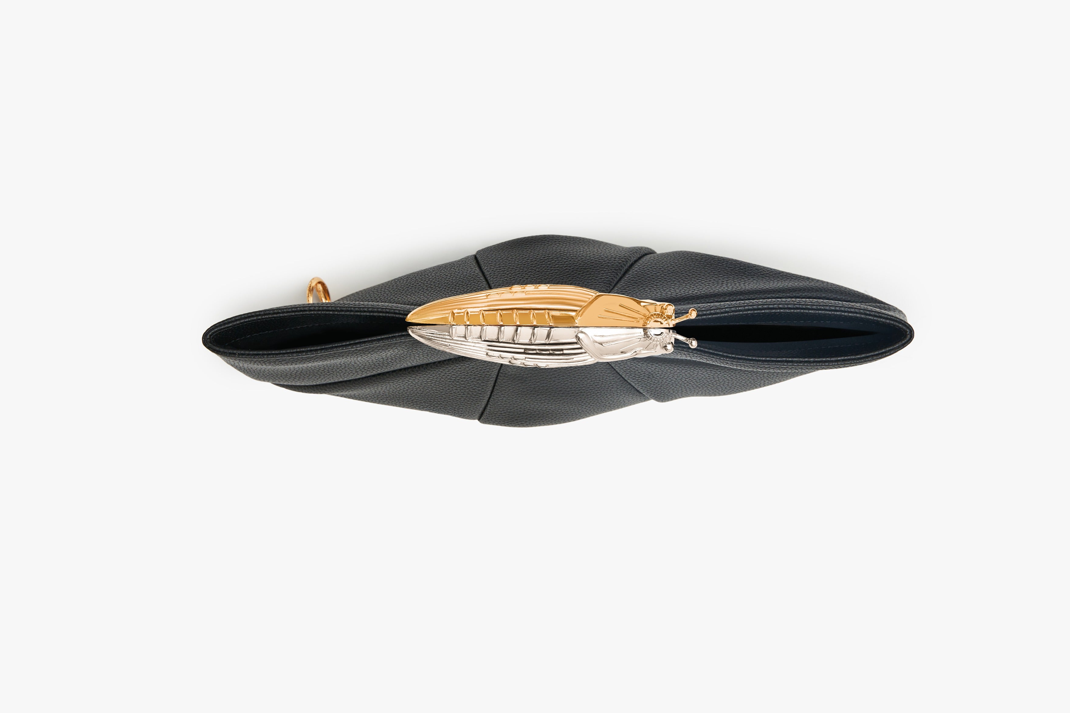 The Koko Klutch is a living emblem of metamorphosis. Crowned with the house’s duo-toned Koko Bug, sculpted in 22k silver and gold-plated metal, it rests upon eco-conscious black leather like a creature upon its own body, breathing with quiet authority.