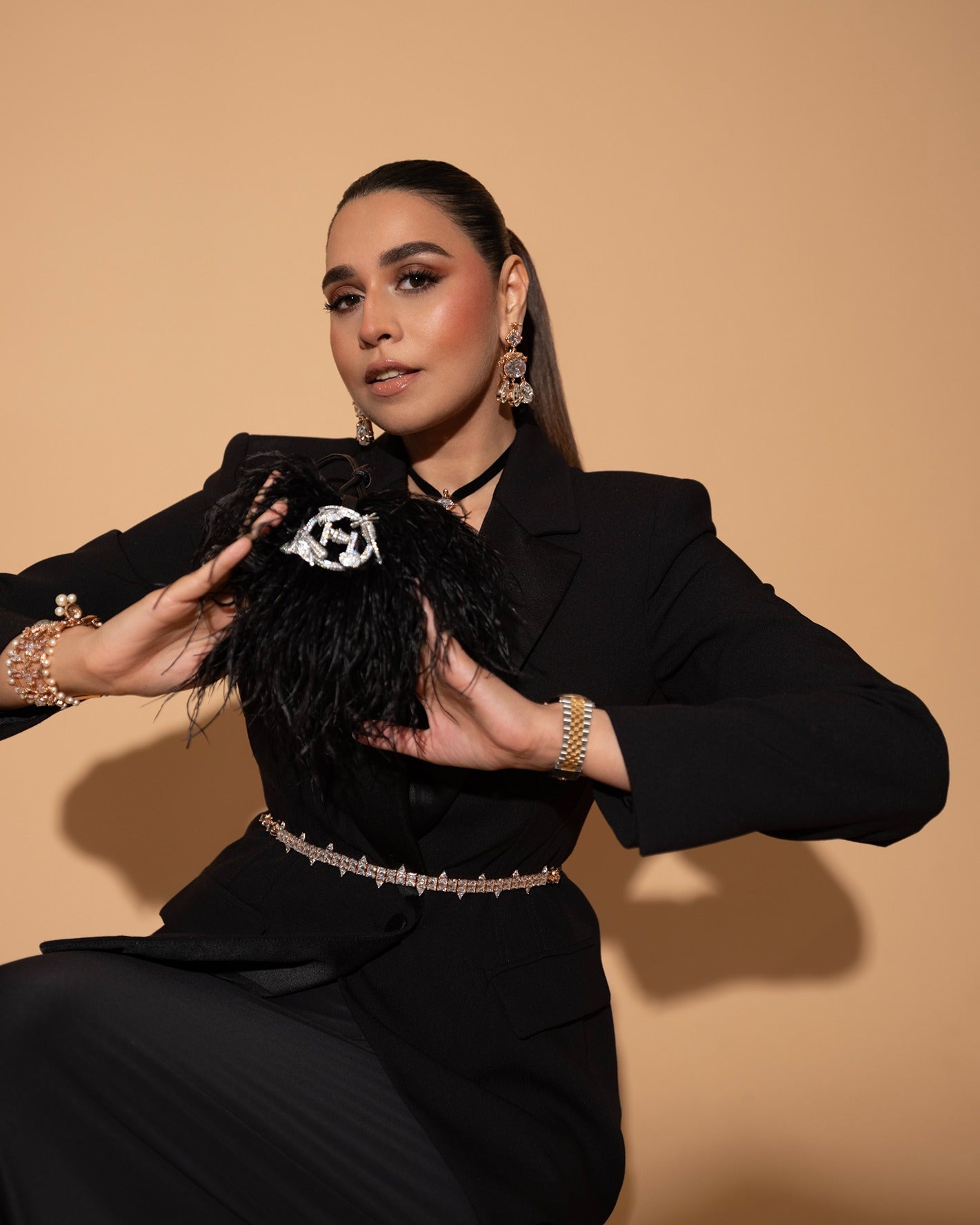 A masterful reincarnation of the house’s iconic Furbie, the Scarlet Minivet in Caviar Black is a feathered minaudière, enveloped in soft and opulent feathers, each one meticulously hand appliquéd, creating a striking silhouette. Pave-set in jewelled cubic zirconia, the emblematic OH monogram captures the essence of refined brilliance, an ode to the house’s exquisite artisanal craftsmanship.