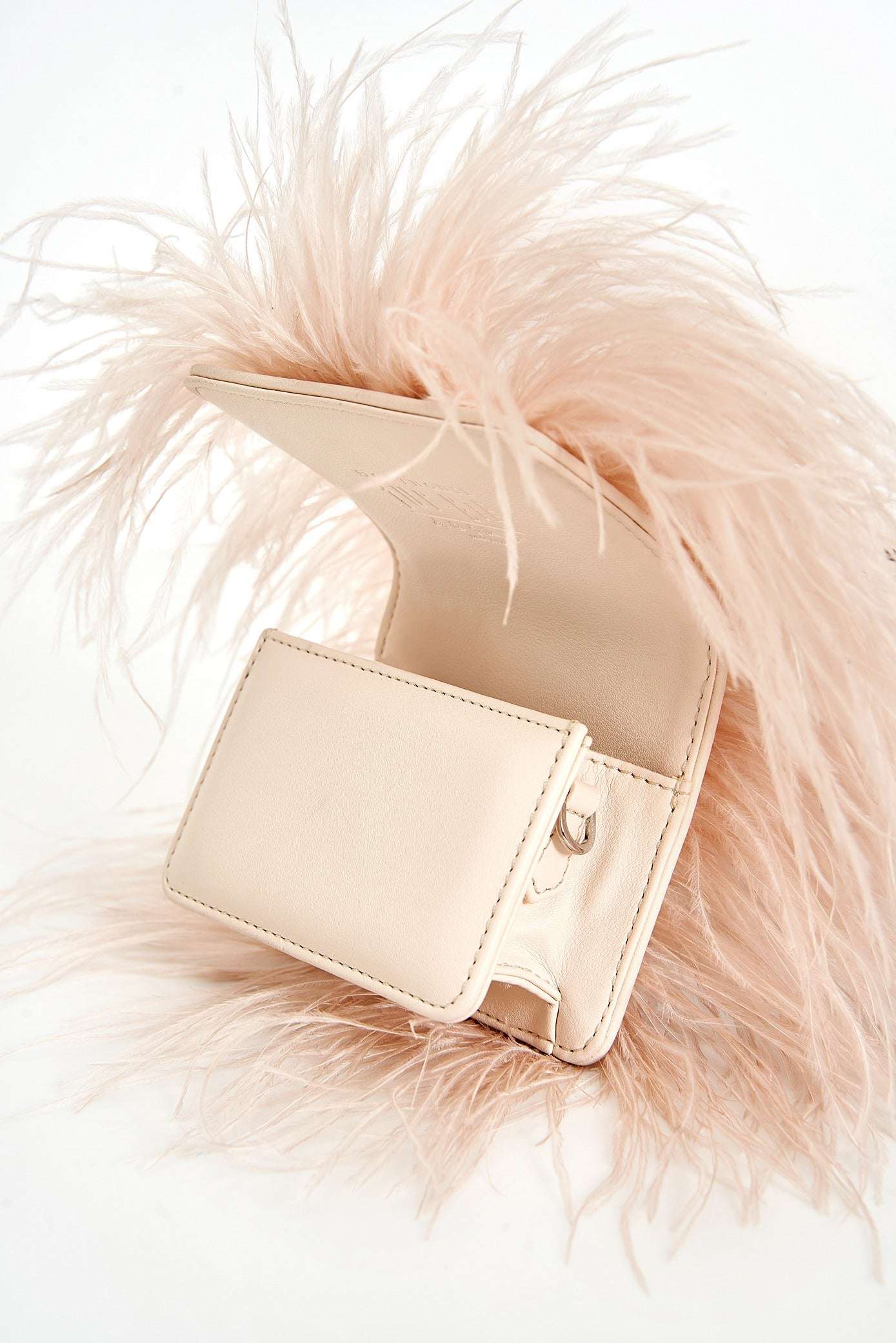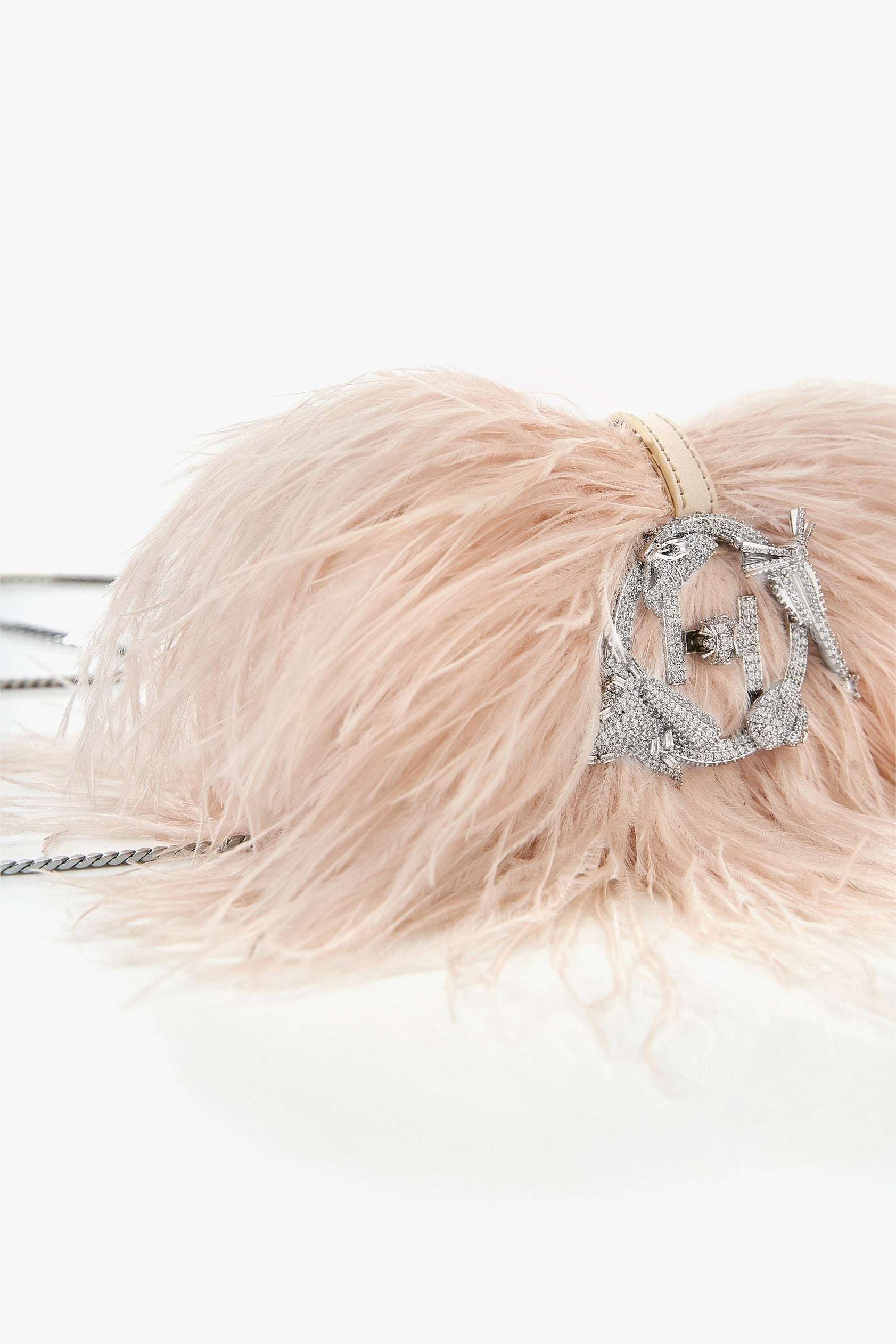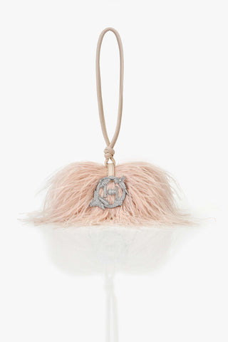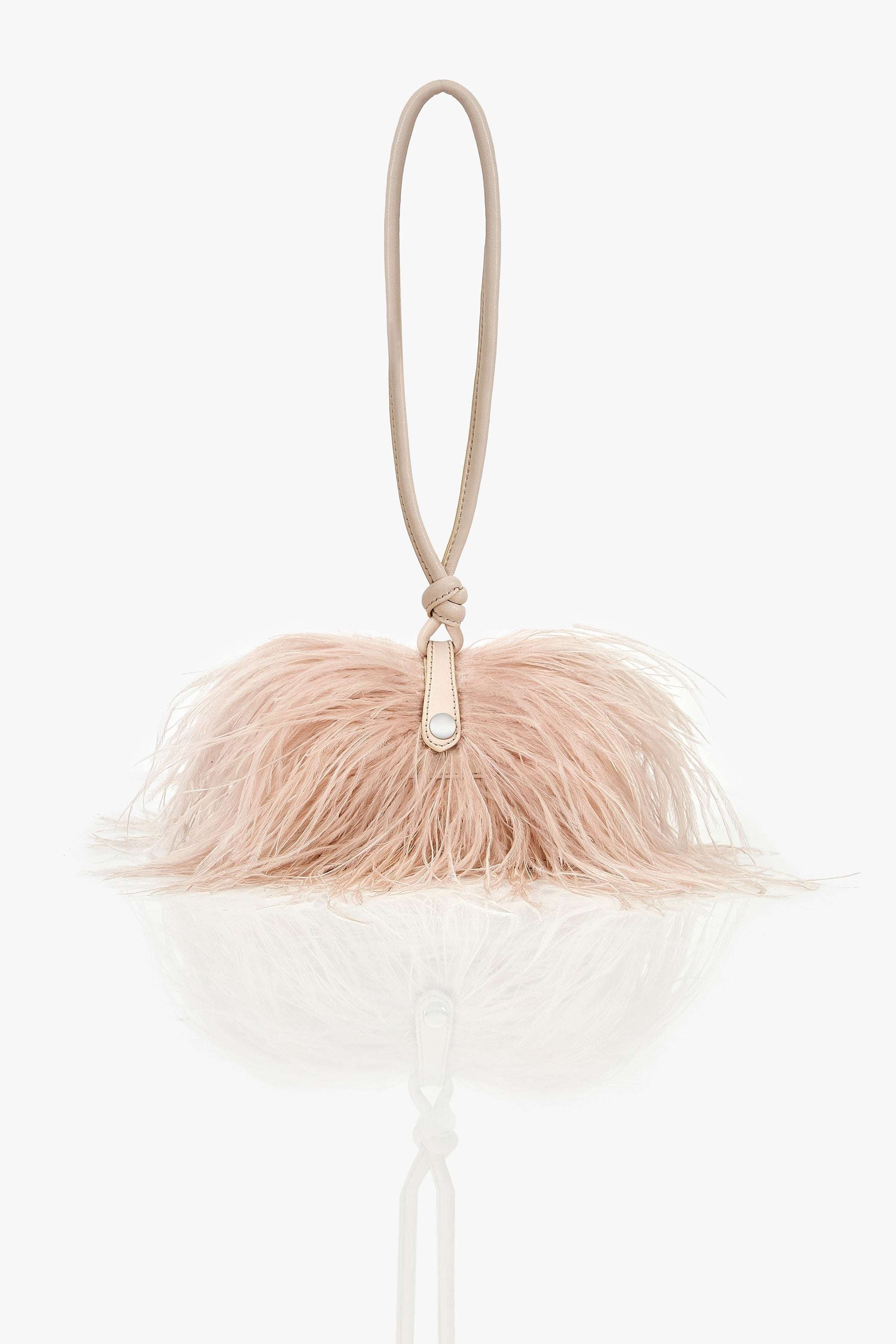 A masterful reincarnation of the house’s iconic Furbie, the Scarlet Minivet in Pearl Pink is a feathered minaudière, enveloped in soft and opulent feathers, each one meticulously hand appliquéd, creating a striking silhouette. Pave-set in jewelled cubic zirconia, the emblematic OH monogram captures the essence of refined brilliance, an ode to the house’s exquisite artisanal craftsmanship.